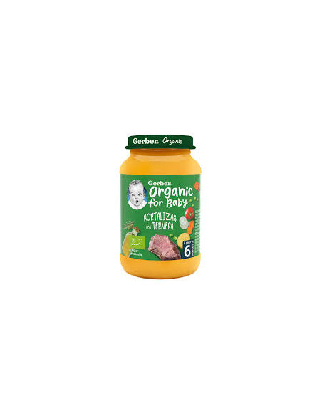 El tarrito de puré para bebé GERBER Hortalizas con Ternera está elaborado con ingredientes 100% orgánicos de primera calidad respetando el medioambiente.