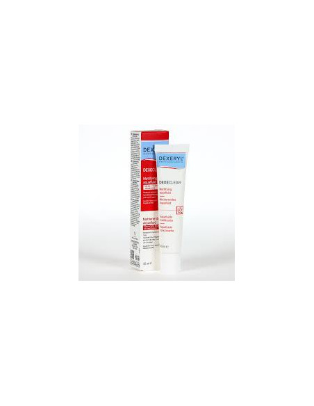 Nuestro nuevo DEXECLEAR Aquafluido Matificante FPS 50+, es una solución eficaz 2 en 1 que matifica y protege la piel grasa y con tendencia acneica de los rayos UV. DEXECLEAR Aquafluido Matificante FPS 50+ contiene un 1 % de P-Refinyl®, que ayuda a reducir el tamaño de los poros. Su fórmula ofrece una absorción inmediata y un tacto seco. Diseñado para piel grasa y con tendencia acneica.