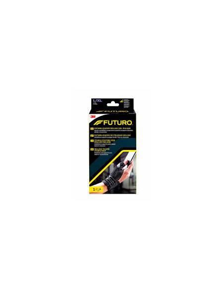 El estabilizador deluxe para dedo pulgar FUTURO™ ofrece una sujeción esencial para tu pulgar, para que puedas centrarte en la tarea que tienes entre manos, tanto si es escribir, un videojuego o trabajos de jardinería.