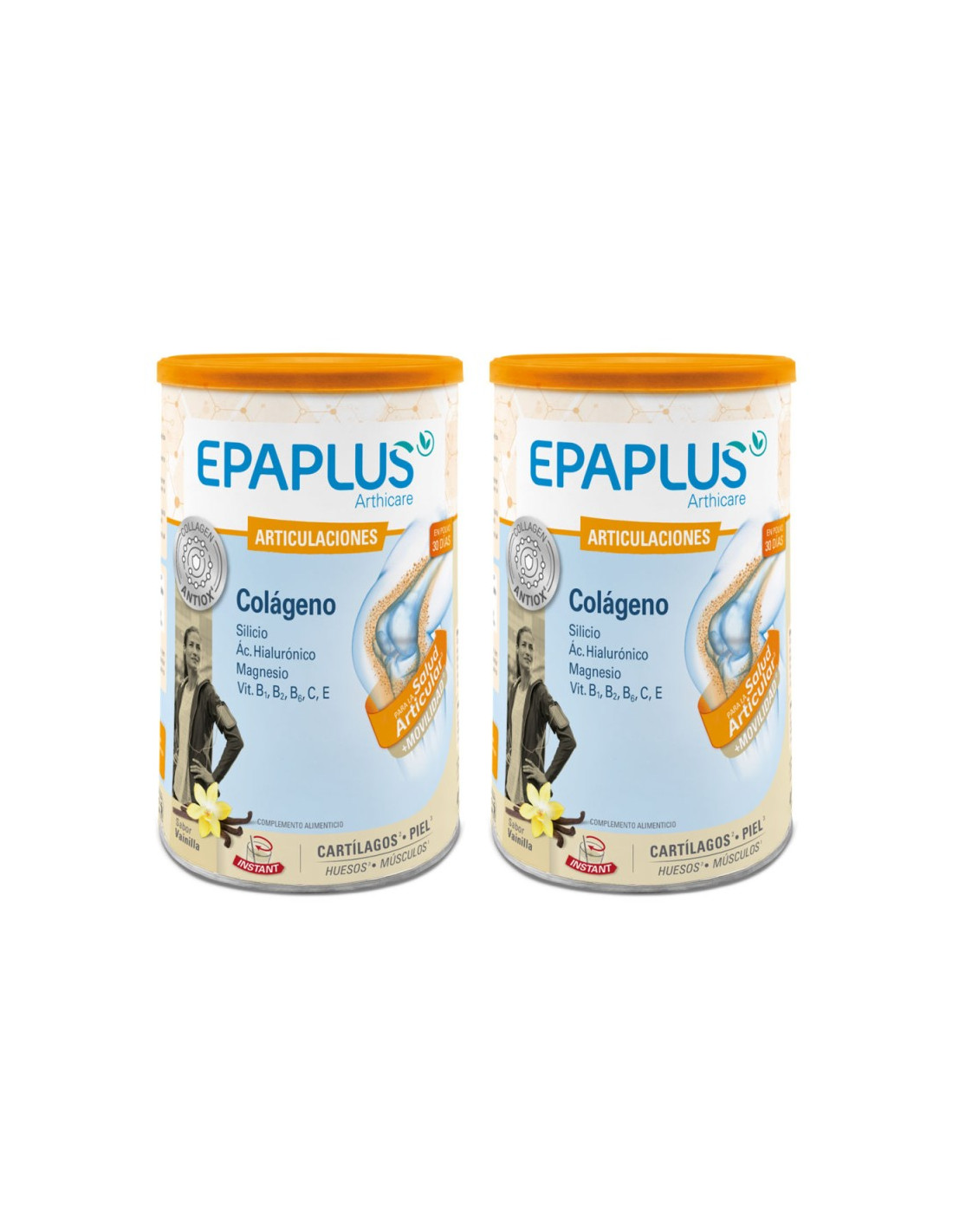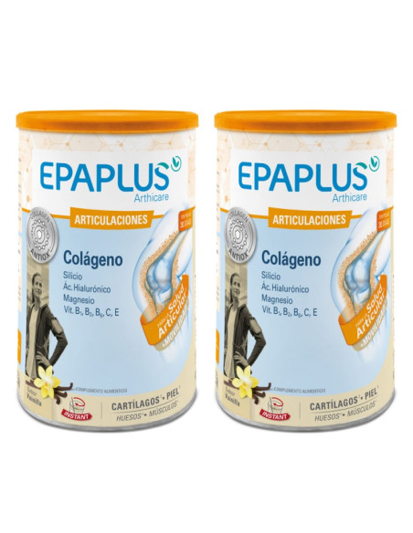 Epaplus Colágeno Antiox Articulaciones sabor vainilla es un complemento alimenticio que ayuda a la flexibilidad y movilidad articular por su contenido en colágeno hidrolizado, silicio (del extracto de bambú), ácido hialurónico, magnesio, vitamina C, vitamina E y vitaminas B1, B2 y B6.