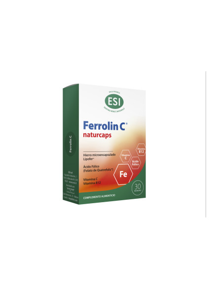 Complemento alimenticio a base de hierro microencapsulado Lipofer® Gracias a la tecnología Lipofer se logra una máxima absorción y tolerancia de este componente, Vitamina C, Acido Fólico (Folato) y Vitamina B12, útil para aportar estos nutrientes en caso de carencias alimentarias de aumento de las necesidades orgánicas. Naturcaps: constituida por una fibra vegetal completamente natural, obtenida de la fermentación de la tapioca; no lleva colorantes artificiales, se digiere fácilmente y es adecuada para veganos y vegetarianos.